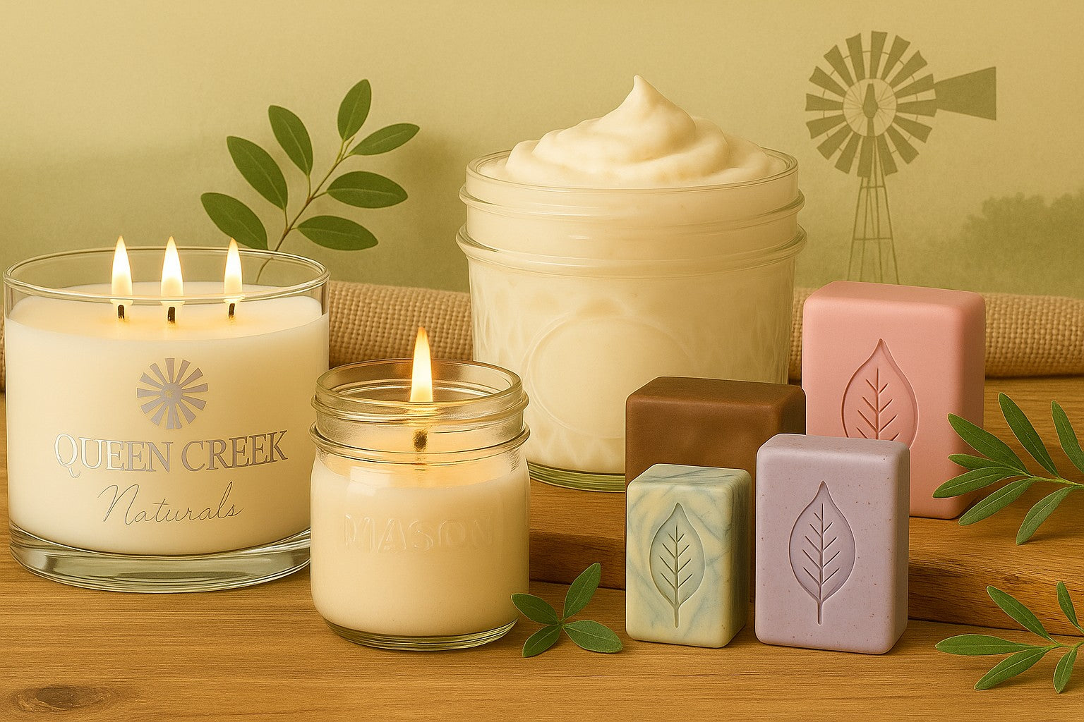 At Queen Creek Naturals and San Tan Beard Company, we proudly ship our handmade natural soaps, candles and more throughout Arizona and across the United States.